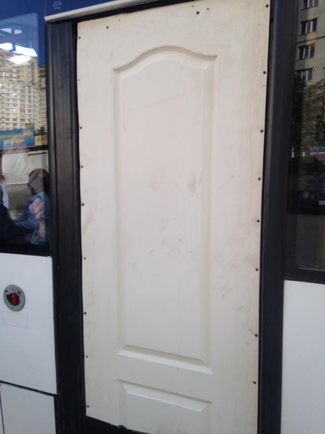По Києву їздить маршрутка, у якої замість звичайних автобусних дверей встановлені міжкімнатні домашні. Такий незвичний автобус помітили кияни і виклали фото і відео в соцмережі.