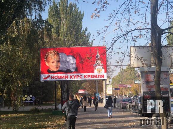 У Кривому розі з'явилися борди на яких Юлія Тимошенко зображена поряд з Віктором Медведчуком та Володимиром Путіним. Як повідомялє PRпортал фото у себе на фейсбук-сторінці опублікувала журналістка Софія Скиба. На рекламних щитах написано слоган: "новий курс Кремля"
