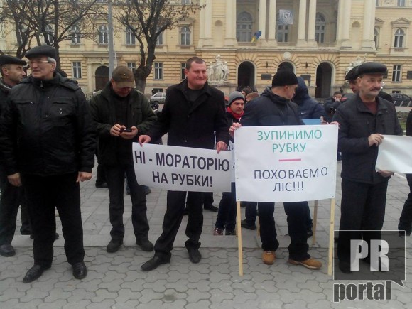 У Львові відбувся пікет людей, котрі виступають за скасування мораторію на вирубку лісу.
