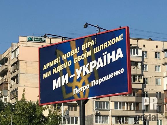 В Україні з'явилася новий сюжет бордової кампанії Президента України Петра Порошенка. Як повідомляє PRпортал, на рекламних носіях з'явився слоган "Армія! Мова! Віра! Ми йдемо своїш шляхом! Ми - Україна!"