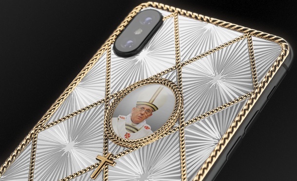 "Великодній" iPhone X отримав кілька варіантів оздоблення - для православних християн (з ликом Ісуса Христа з ікони "Спас Нерукотворний"), для католиків (з ликом Папи Римського Франциска), а також з державним Гербом Росії.