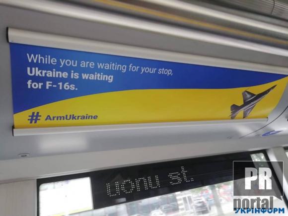 «Поки ви чекаєте на свою зупинку, Україна чекає на F-16». — такий вигляд мають автобуси у Вільнюсі, де розпочався саміт НАТО.