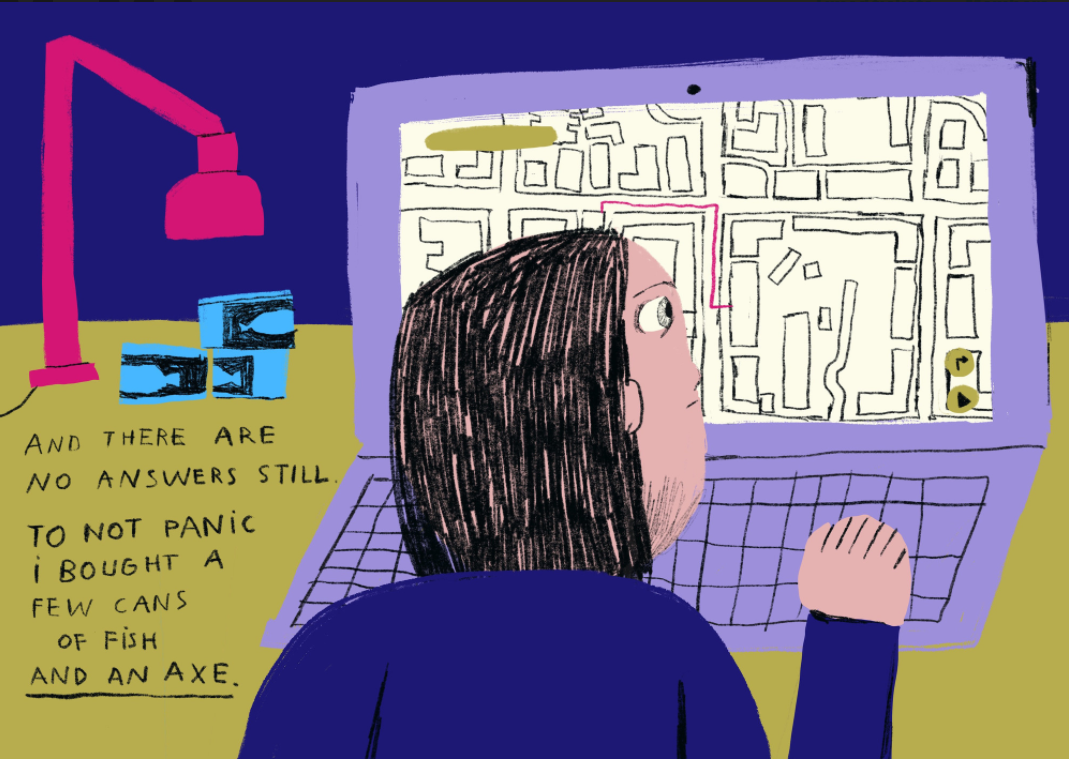 "Для Museum of Modern Art я намалювала коротку історію про те, як зараз жити в Україні. Спойлер: відчуття напруженості та тривоги", – написала Сарвіра у Facebook.