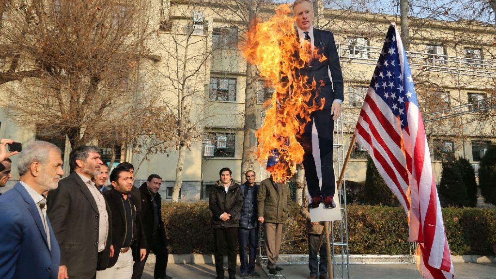 Іранські демонстранти спалили зображення посла Великої Британії в Тегерані, якого судова влада країни назвала "небажаним елементом".