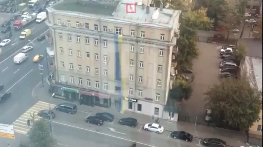 На одном из фасадов дома в Москве вывесили флаг Украины. Об этом сообщает пресс-служба "Азова".
