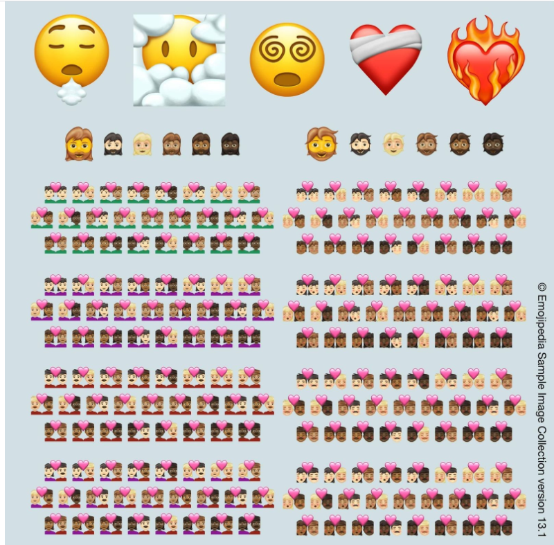 Консорціум Unicode представив 217 нових емодзі, які зʼявляться у версії Emoji 13.1 у 2021 році. Там є емодзі з 200 відтінками шкіри для пар, палаюче серце і жінка з бородою. Про це пишуть у блозі організації.