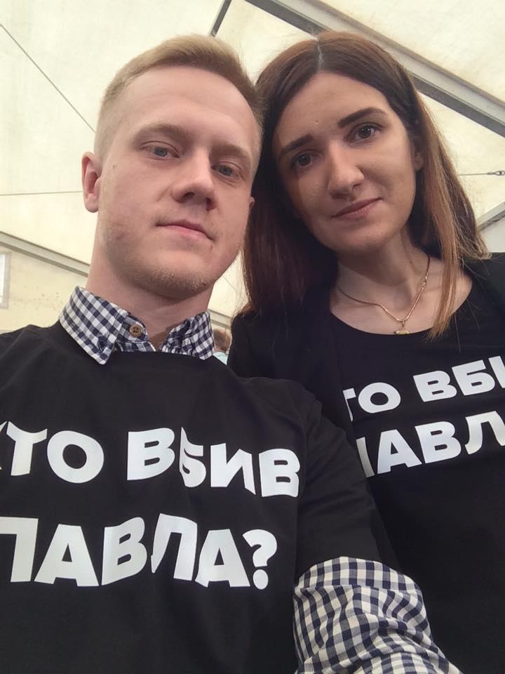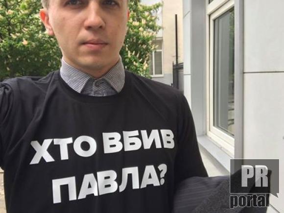 На прес-конференцію Президента Петра Порошенка деякі журналісти прийшли у чорніх футболках з написом: "Хто впив Павла?"