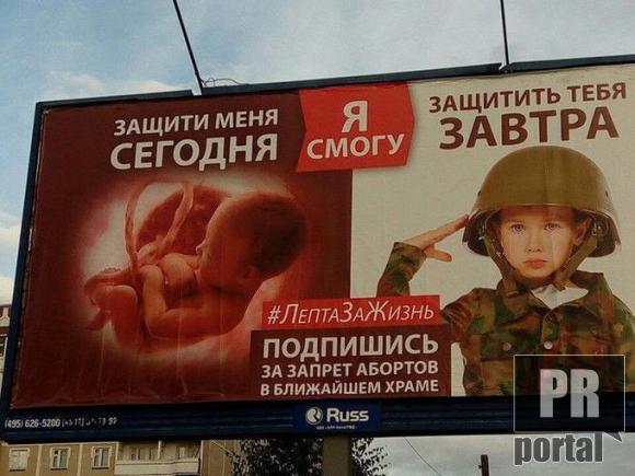 На росії рекламують акцію "ЛєптаЗаЖизнь". Від імені заплідненої матки реклама закликає піти в найближчу церкву і підписатися за заборону абортів