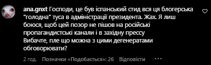 - Господи, це був іспанський стид вся ця блогерська "голодна" туса в адміністрації президента. Жах. Я лиш боюся, щоб цей позор не пішов на російські пропагандистські канали і в західну пресу. Вибачте, але що можна з цими дегенератами обговорювати?