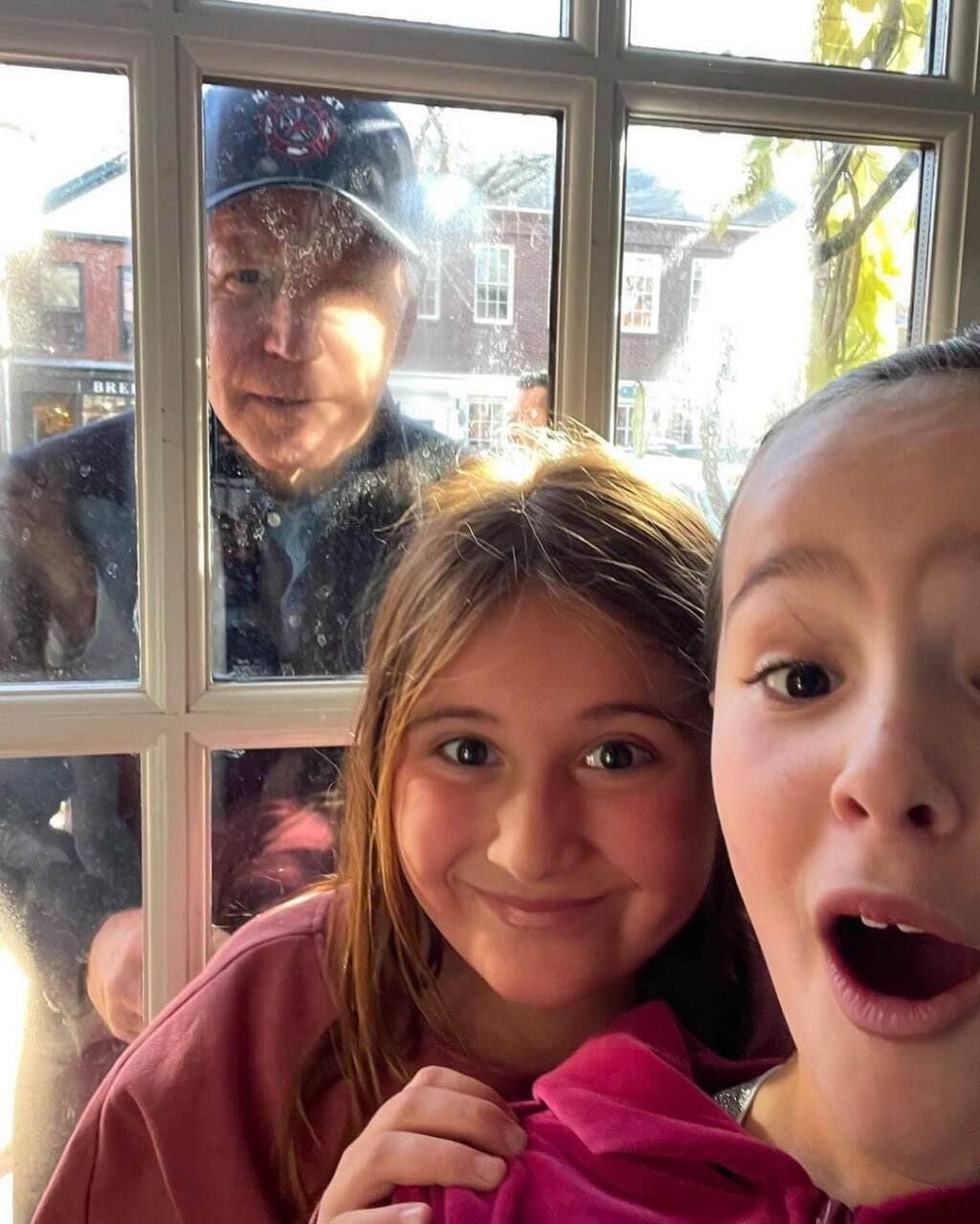 Юні американки не розгубилися і зробили кілька селфі з президентом. Але до будинку його запрошувати не стали, зробивши фотографії через вікно.