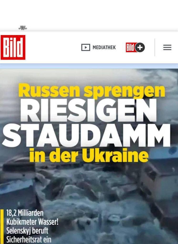Німецьке видання Bild потрапило у гучний скандал: вони прибрали згадку про росію з обкладинки про теракт на ГЕС