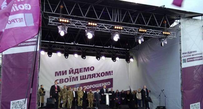 По словам Владиславы Диденко, вдруг запестрели флаги «Национального корпуса» сначала на видимом горизонте, затем на экране. Увидев, что не застали действующего президента, молодчики в масках решили устроить шоу посетителям, особенно родителям маленьких детей. Скучкувавшись у здания прокуратуры, которое находится через дорогу от места митинга, начали жечь файеры, стрелять хлопушками, произошла стычка с полицейскими, где одному из них разбили лицо. Представители «Нацдружин» попытались прорываться к сцене, которую уже в то время разбирали. К тому времени людей уже не осталось и трети, однако, это не помешало Дмитрию Кухарчуку хрипеть в микрофон, как они, простые «мальчики в трусиках и одинаковых курточках», просто хотели поговорить с Порошенко.