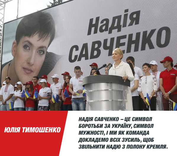 На съезде партии, который прошел 14 сентября, Тимошенко зачитала просьбу Надежды принять ее в ряды партии. Просьба была удовлетворена. Далее ЮВТ заявила, что она уступает пленной летчице первый номер в списке партии, а сама пойдет под номером два. Такого в партии «Батькивщина» еще не было, чтобы лидер по доброй воле отдал первое место.