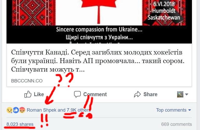 Суть "новини" така: мовляв, у Канаді сталася катастрофа національного масштабу, розбився автобус із хокеїстами (і це правда), а в Україні це нікого не цікавить, бо навіть співчуття не було (а це - брехня).