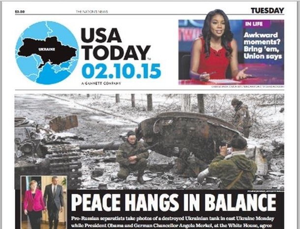 Ведущая американская газета USA Today 10 февраля 2015 года опубликовала на первой странице выпуска карту Украины без Крыма.