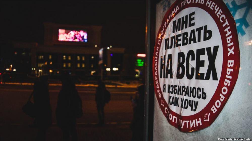 Движение "Открытая Россия" запускает акцию "СтопПутин", приуроченную к выборам президента в марте 2018 года. Активисты наклеивают стикеры "СтопПутин. Избираюсь как хочу" на билборды с официальной рекламой мартовских выборов в публичных местах. Цель акции – обратить внимание россиян на то, что "выдвижение Владимира Путина в президенты проходит в хамской манере и нарушает все возможные демократические процедуры".