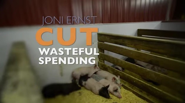 «Я, Джони Эрнст, с детства занималась кастрацией свиней на ферме в Айове. Теперь я направляюсь в Вашингтон - я знаю, как надо резать свинью. В Вашингтоне полно злостных транжир, а я покончу с расточительностью…давайте заставим их [демократов] визжать!», - сообщает с обманчиво милой внешностью кандидатка. Что тут добавить – Джони мечтает попасть в Сенат от республиканской партии.