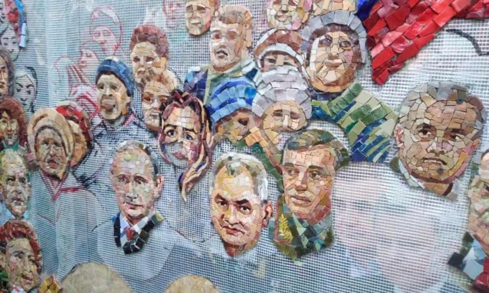 На фотографиях фрагментов мозаики, обнародованных западными СМИ на прошлой неделе, изображены Путин, его министр обороны Сергей Шойгу и другое высшее руководство в толпе людей, выступающих в поддержку аннексии Крыма в 2014 году.