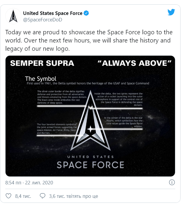 Командування Космічних сил США відповіло на закиди публіки щодо схожості своєї символіки з логотипом космічної організації з культового серіалу Star Trek. Військові вважають, що прототип їхнього символа давніший за фантастичний серіал, і показали його оновлену версію.