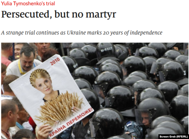 «І вона не одна в такій думці. Російський уряд закликав до її звільнення, погрожуючи, що арешт Тимошенко матиме негативний вплив на відносини України з країнами цілого світу. Правозахисні групи в США та в Україні також піддали критиці засудження».