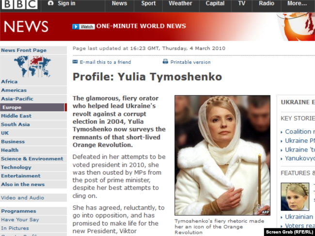 У березні 2010 року, після поразки на президентських виборах 2010 року, ВВСопублікувала політичний портрет Юлії Тимошенко.