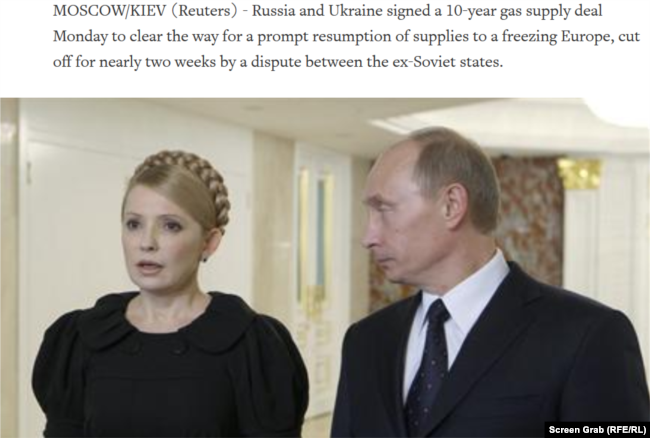 «Після переговорів поблизу Москви з його українською колегою Юлією Тимошенко, він (Путін) сказав, що якщо такі повідомлення будуть підтверджені, вони означатимуть вчинення «злочину»…