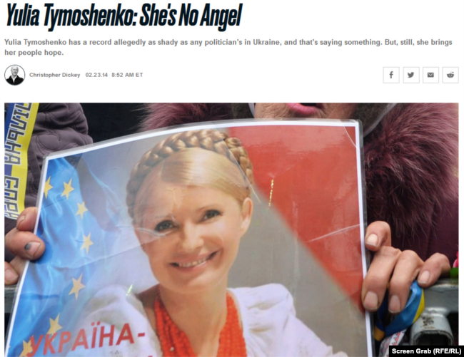 У цей самий день – 23 лютого 2014 року – американське видання The Daily Beastвміщує статтю під заголовком: «Юлія Тимошенко: вона не ангел».