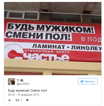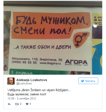 В 2012 году екатеринбургская торговая компания «Агора» решила обыграть многозначность слова «пол» и выдала четыре двусмысленных слогана: «Будь мужиком, смени пол», «Ушла жена — смени пол», «Сменить пол может каждый», «Пришло время пожить для себя, смените пол». Однако и в этой рекламе управление ФАС по Свердловской области не нашло ничего противозаконного. Популярный слоган также разошелся по другим российским городам.