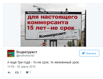 «Коммерсантъ» в своей рекламе также часто идет на рискованную игру слов. Например, в 2004 году свое 15-летие издательский дом отметил билбордами с текстом «Для настоящего коммерсанта 15 лет — не срок», а в 2005 году использовал слоган «Был бы коммерсантъ, а статья найдется».