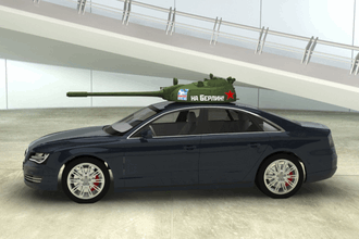 При желании и возможностях патриотический цирк можно сделать передвижным и персональным. Некий умелец предлагает «отпраздновать 70-летие Великого Дня Победы так как до этого не делал никто, а именно хочу предложить Вам установить пушку от танка на Ваш автомобиль!». «Пушка состоит из пластмассового каркаса весом не более 1.7 кг, каркас без углов (чтобы исключить даже мельчайшие вмятины или царапины Вашему автомобилю), – обещает автор предложения (орфография и пунктуация оригинала сохранены. – Прим. ред.). – Далее на каркас надевается чехол из полиэстера и стягивается у основания башни шнурком. К машине вся пушка крепиться ремнями на липучках (ремни нужно протянуть с двух сторон в заднюю часть салона автомобиля и затянуть, ремни мешать не будут, не беспокойтесь). Сборка крайне проста и не займет более 3-х минут. Процесс сборки представлен в видео, а также схема сборки будет вложена в посылку». Пушка к тому же разговаривает голосом Левитана. Можно заказать не пушку, а «знаменитый БМ-13, со своим звуковым сопровождением». Удовольствие не из дешевых – не менее 130 000 рублей.