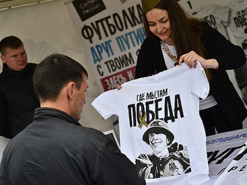 В Петербурге можно купить патриотические футболки с ветераном, а также с Путиными и бурым мишкой (на Невском — около тысячи рублей, в Апрашке за углом более дешевые, но не менее символичные аналоги). Компания – продавец квадроциклов на сайте использует георгиевскую ленточку в рекламных целях: она объявила скидки ко Дню Победы, но при этом обещает перевести 1 тысячу рублей с каждого проданного агрегата в пользу ветеранов. Сайт «Все для отопления» тоже украшен ленточкой и орденом Победы — там дают 30%-ную скидку на монтаж радиаторов отопления и водонагревательного оборудования. Интернет предлагает праздничные трусы «Гитлер капут!», а супермаркеты – черно-оранжевые леденцы на палочке. Для потребителя любого пола и возраста найдется свой кусочек Великой Победы.