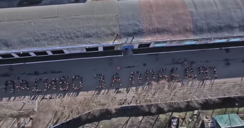 Апофеоз — официальное видео Управления ФСИН РФ по Санкт-Петербургу и Ленобласти. Они в честь 9 Мая в петербургских колониях провели флешмоб: заключенные выстроились в слова «Спасибо за Победу!» и «70 лет». Люди, одетые в тюремные робы, маршируют, распевая «Катюшу», строятся и отпускают в небо черные и оранжевые воздушные шарики. Впрочем, тут все бесплатно, никаких затрат – разве что на шарики.