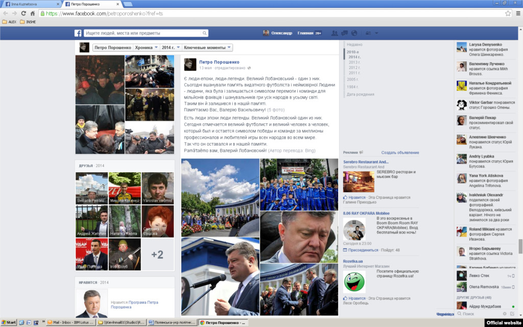 А на сторінці Петра Порошенка у Facebook можна побачити як тексти, написані сухою мовою прес-служби, так і повідомлення, в яких вгадується авторський стиль нового президента. Зокрема, ще до інавгурації він писав пости про легендарного тренера київського «Динамо» Валерія Лобановського, пам’ятник якому опинився у епіцентрі протистояння Майдану на вулиці Грушевського.