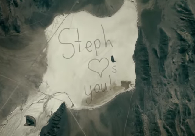 2. Следующая рекламная кампания также автомобильной тематики. Более того, это не классическая OOH-кампания бренда, это самая что ни на есть out-of-planet-кампания. Hyundai помогла отправить послание девушки Стефани отцу-космонавту на Международную космическую станцию. Основой для сообщения стало высохшее озеро в штате Невада, а инструментом его создания — 11 автомобилей Hyundai Genesis, оснащенных шинами со специальным протектором. Автокавалькада нарисовала на песке сообщение, которое отец Стефани увидел и сфотографировал из космоса.