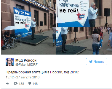 Некоторые в порыве творческого вдохновения решили помочь депутату партии «Родина» Игорю Коротченко с предвыборным лозунгом и заодно определиться с сексуальной ориентацией при помощи фотошопа.