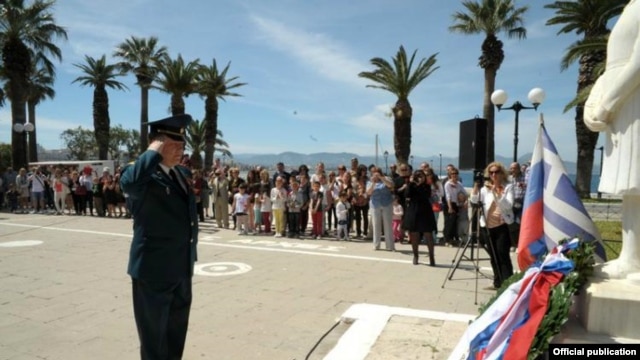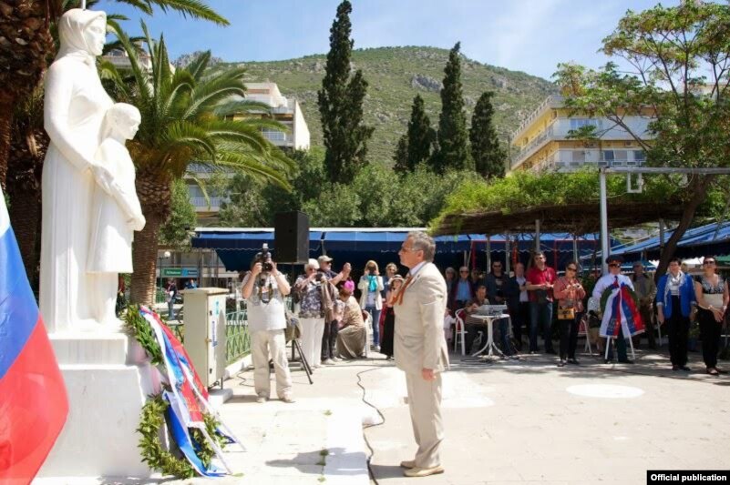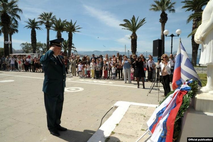 Тоді ж учасники фестивалю урочисто поклали квіти до пам'ятника російському і грецькому державному діячеві XIX століття Іоанну Каподістрії у грецькому місті Лутракі. При цьому гості свята прикрасили себе георгіївськими стрічками.