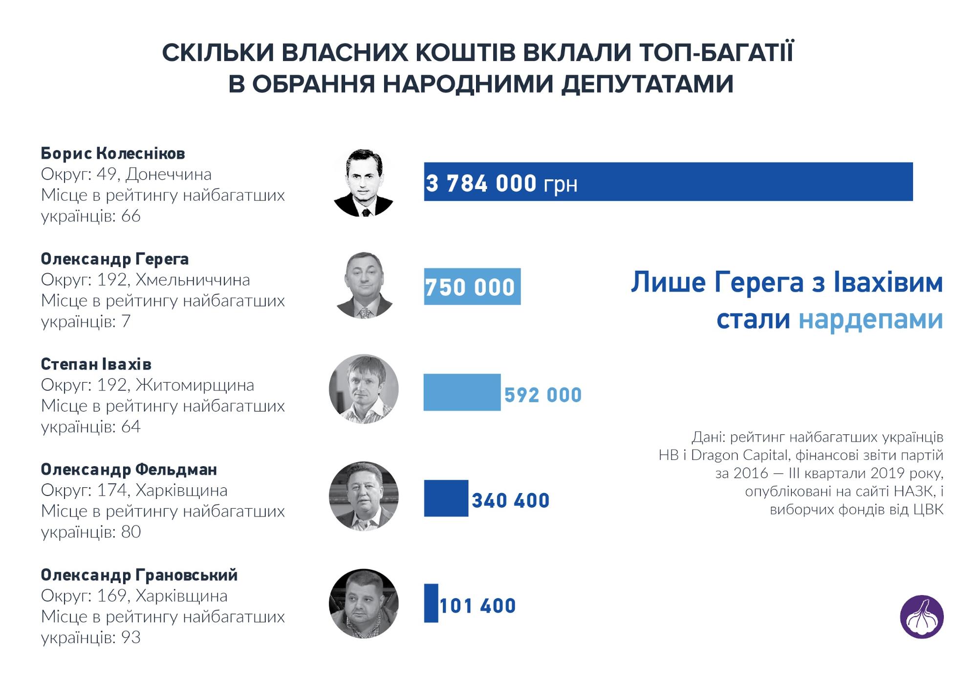 Цікаво, що всі перелічені кандидати, які спонсорували свою виборчу кампанію, не залучали більше нічиїх грошей. Виняток – Олександр Грановський. Він, окрім власних 101,4 тисячі гривень, якщо вірити його фінзвіту, зібрав на вибори ще майже два мільйони від приватних осіб.