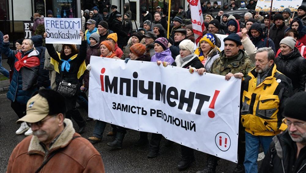 Сторонники Саакашвили требуют импичмента Порошенко, передает информагентство Associated Press. В воскресенье несколько тысяч человек прошли маршем по центральной улице Киева, требуя освобождения своего лидера и скандируя: «Долой банду!» и «Импичмент!».