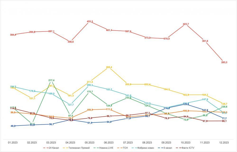 4. Вцілому ринок інформканалів за 2023 рік впав на понад 15%, і думаю, що у 2024 році ця негативна динаміка збережеться, тому слід розраховувати, що падіння можливе іще на 15-20%. Але вже зараз видно, як малі каналі поступово просуваються по турнірній таблиці, а це цінність контенту починає переважати над "жовтими заголовками" та "розмовами з експертами" ні про що.
