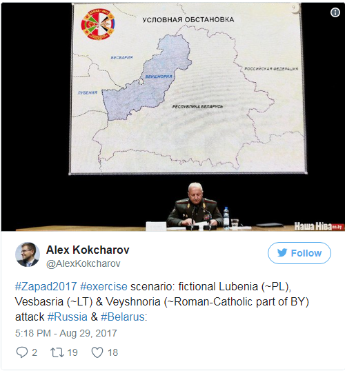 За сценарієм навчань, Вейшнорія планує вторгнення до Білорусі, щоб посварити Мінськ та Москву, тобто одна частина Білорусі, немовби, бажає напасти на іншу.