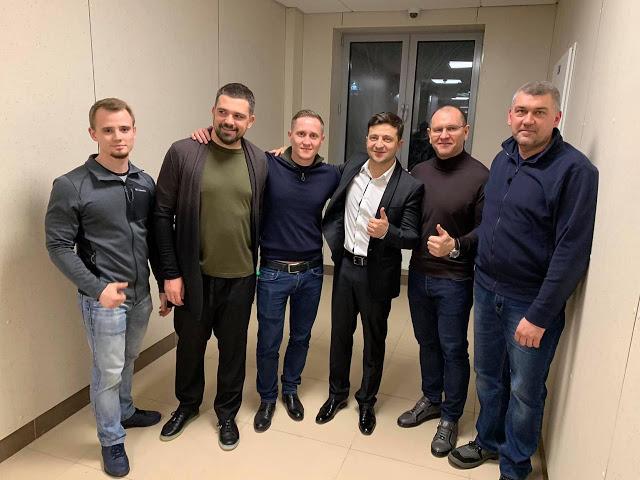В центре – Владимир Зеленский, справа от него – Евгений Шевченко