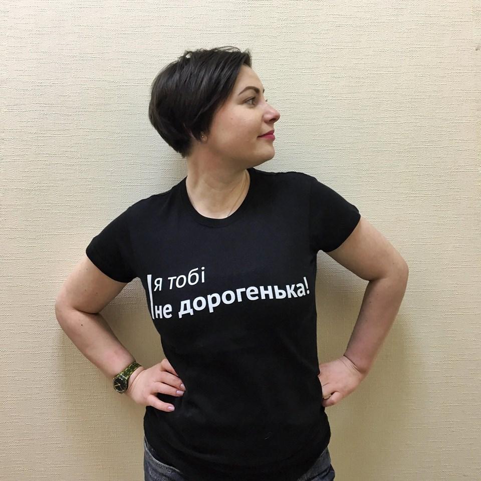 Медіаекспертка Інституту масової інформації Ірина Земляна та журналістка «Громадського радіо» Єлизавета Кузьменко напередодні Міжнародного жіночого дня одягли футболки з написом «Я тобі не дорогенька».