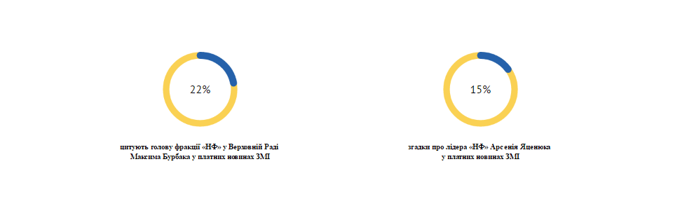 Співставивши платні новини на сайтах Ліга.net та ZAXID.NET, публікації про партію на деяких інших сайтах, де такі повідомлення з'являлися регулярно та новини самої партії, ми виявили серію зі 197 прес-релізів (більшість з них є і на самому сайті НФ), які поширювалися у провідних онлайн-медіа.