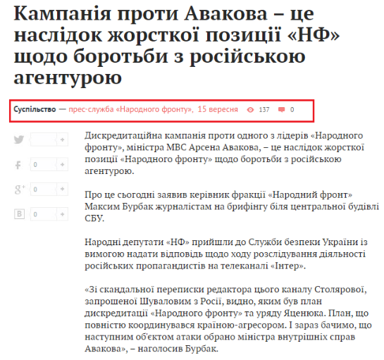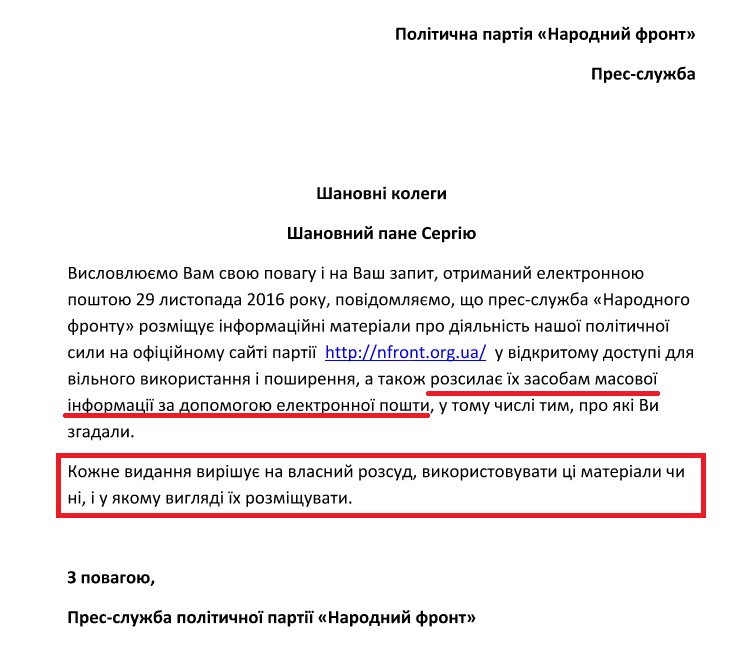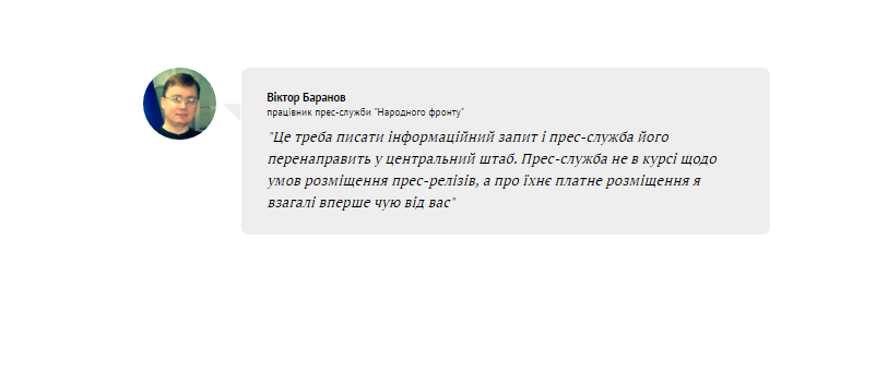 Ці матеріали видання також маркувало «Прес-служба «Народного фронту».