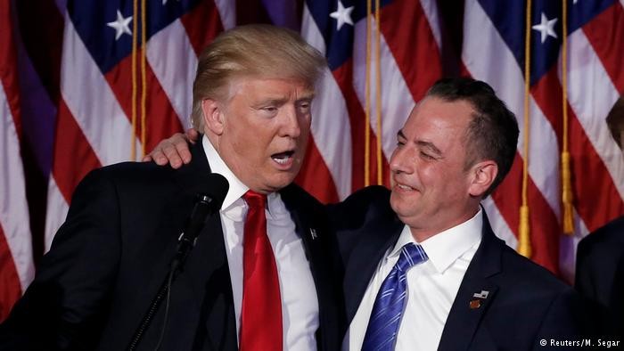 Новообраний президент США Дональд Трамп зробив два перші призначення у свою адміністрацію, яка формально перейде до виконання повноважень 20 січня 2017 року. 44-річний Райнс Прібес, голова Республіканського національного комітету, стане головою адміністрації президента США, тоді як 62-річний медіабізнесмен Стівен Беннон отримає посаду головного стратега та старшого радника, повідомляє агентство AP, - повідомляє DW.COM