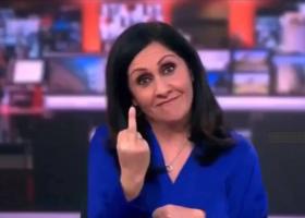 Жінка не встигла вчасно прибрати свій жест, сказавши після жесту: «Прямий ефір з Лондону!»