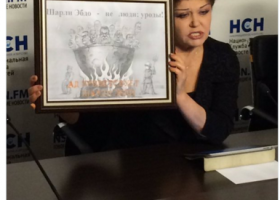 Сенатор Валентина Петренко показала 11 ноября карикатуру о французской газете Charlie Hebdo. На ней изображены люди в котле, стоящем на огне.