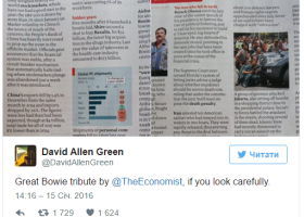Журнал The Economist в номері від 16 січня вшанував пам'ять Девіда Боуї, склавши підзаголовки в огляді новин з назв пісень музиканта