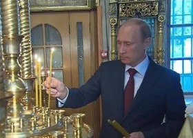 Президент Российской Федерации Владимир Путин поставил в храме Живоначальной троицы свечи за пострадавших "защитников Новороссии".