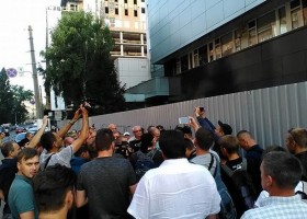 Присутні біля телеканалу Інтер у Києві оголосили безстрокову акцію протесту та блокування каналу